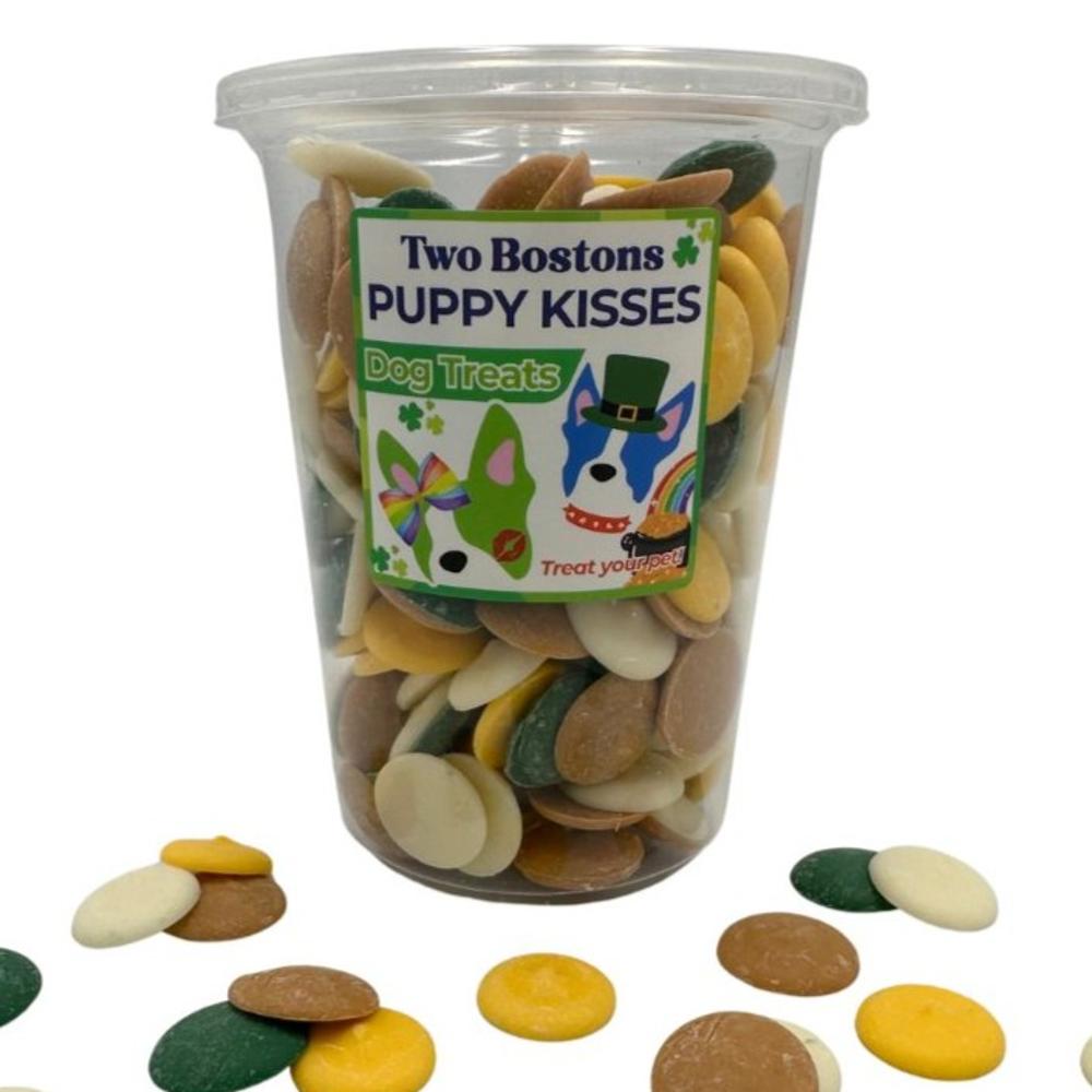 Lucky Dog Puppy Kisses from Two Bostons are favorite treats with our canine customers! This fun collection is packed with yummy vanilla and peanut butter kisses in festive colors, a pot of gold for your lucky pup! Net wt. 20 oz.
