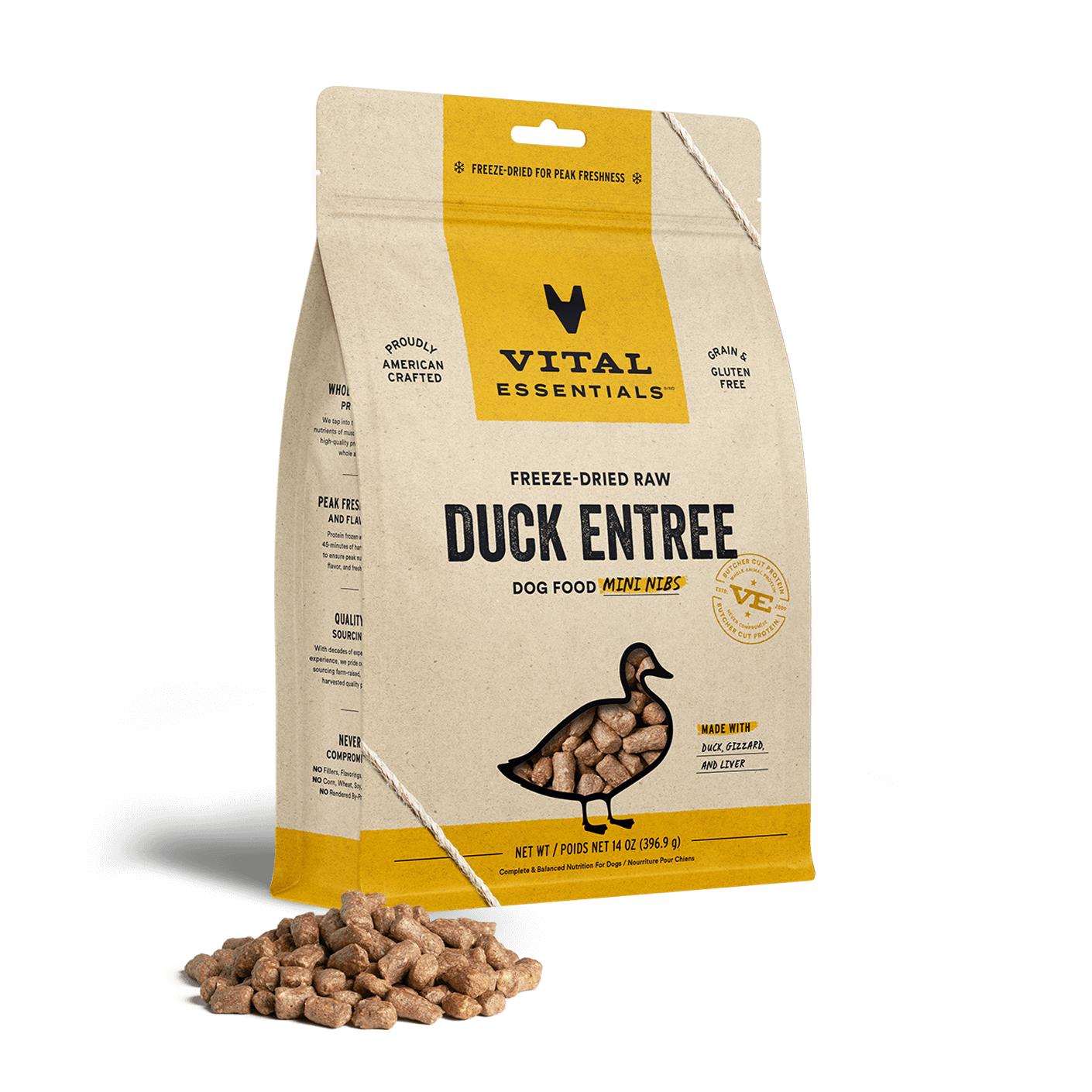 Your pup instinctually craves pure raw protein like they would choose in nature. Bring home the best prey for your pet with the Duck Freeze-Dried Mini Nibs by Vital Essentials. These mini nibs are a complete and balanced entirely on their own, and also make a great meal topper or puzzle toy filler.