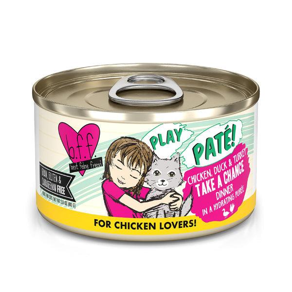 It's a sure bet your cat will love Weruva's Chicken, Duck & Turkey Take a Chance dinner! A creamy blend of savory and aromatic chicken, duck, and turkey in a hydrating puree dinner. A delicious and satisfying recipe your cat will definitely love! No grains, gluten or carrageenan. Net wt. 2.8 oz.
