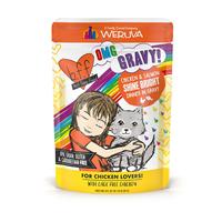Rise & shine, it's breakfast time! Your b.f.f. won't be tempted to sleep in when you serve up Weruva's Chicken & Salmon Shine Bright! Savory and delicious gravy-based chicken and salmon recipe provides extra hydration, healthy fats and minimal carbs and is grain, gluten, carrageenan, and starch free. The chicken used in Weruva's recipe is the boneless, skinless white breast meat from chickens free of added hormones or antibiotics. Salmon is wild-caught and sustainably harvested. Weruva is carnivore-focused nutrition in a complete meal, produced in Thailand in a state-of-the-art human grade USFDA certified production facility. A satisfying and nutritious meal your cat will adore. Make room in the kitty cupboard - this will be a favorite. Net wt. 2.8 oz.