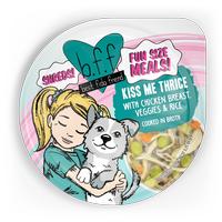 Weruva's b.f.f. Kiss Me Thrice with Chicken Breast, Veggies, and Rice is a meal fit for your favorite furball! Made with succulent shreds of white meat chicken breast, a hearty combination of carrots and peas, and cooked in mouthwatering chicken broth, your pooch will fall head over paws for this food. And, thanks to the added rice, this recipe is easy to digest so their tummy is happy, too! Carefully crafted with your pup's tastes in mind, we know they'll be obsessed with this scrumptious recipe!