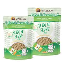 Let's Make a Meal! Will your kitty choose what's inside Pouch Number One or Pouch Number Two? Every choice is a winner when it comes to the delicious combination of grass-fed New Zealand lamb and wild-caught mackerel! This yummy pate is packed with all the moisture and nutrients to keep your cat healthy and hydrated. Every meal is made completely from human-grade ingredients in human-grade kitchens, with no fillers, grains, or carrageenan because Weruva knows your kitty deserves the best! (Silly costumes not required, but strongly encouraged).