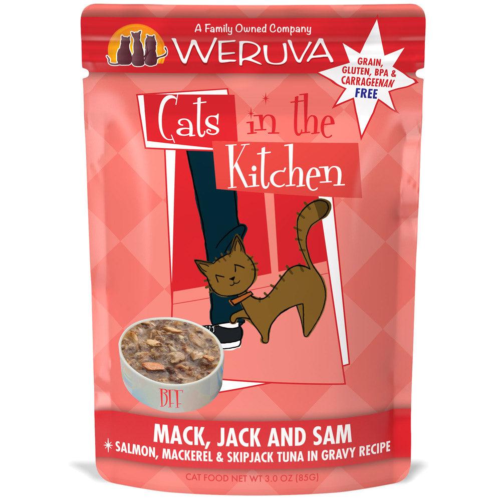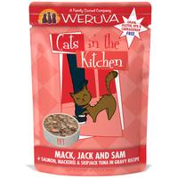 This fine fish combination is sure to have your fancy feline licking the bowl! Weruva Cats in the Kitchen Mack Jack and Sam contains a flavorful amount of mackerel, skip jack tuna, and mackerel submerged in gravy! This formula is grain and BPA free. You'll be able to hear your cat purring in excitement when this pouch is opened! Weruva Cats in the Kitchen Mack Jack and Sam's pouch keeps in the moisture and water which is great for cats with UTI's and kidney issues. Plus it's much easier to open than those metal cans! So get your cat to lickin' with the Weruva Cats in the Kitchen Mack Jack and Sam! 3 Oz Pouch.