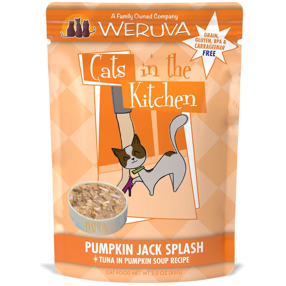 This fall flavor can now be enjoyed by your cat as well! Weruva Cats in the Kitchen Pumpkin Jack Splash contains a flavorful amount of tuna submerged in pumpkin soup! This formula is grain and BPA free. You'll be able to hear your cat purring in excitement when this pouch is opened! Weruva Cats in the Kitchen Pumpkin Jack Splash's pouch keeps in the moisture and water which is great for cats with UTI's and kidney issues. Plus it's much easier to open than those metal cans! So get your cat to lickin' with the Weruva Cats in the Kitchen Pumpkin Jack Splash! 3 Oz Pouch