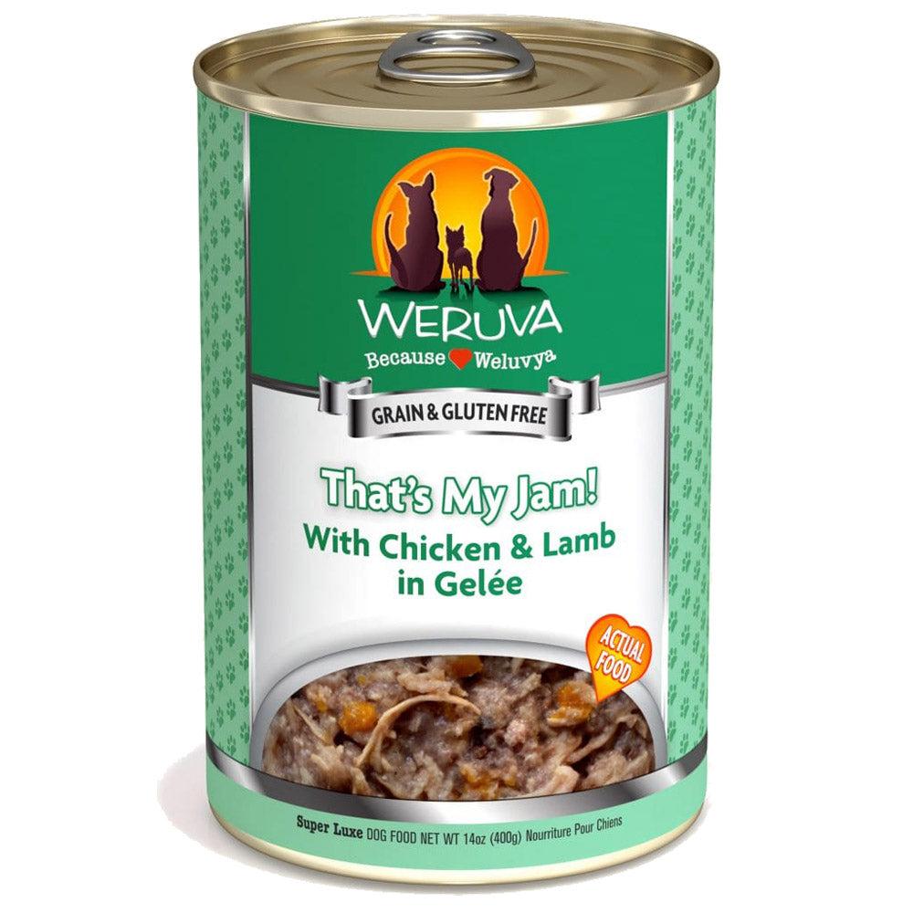 our dog will love the taste of Weruva's commitment to honest nutrition with this classic chicken and lamb recipe. That's My Jam combines boneless, skinless chicken breast and New Zealand lamb. Real shreds of chicken mixed into lamb pate will be your dog's favorite jam. This recipe is rich in nutrition and made without grain, gluten, starch and carrageenan.