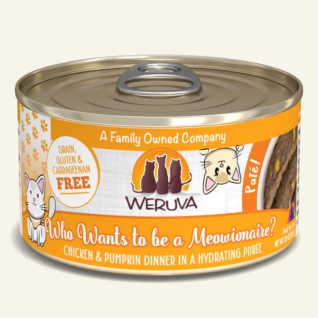 Your kitty will think they've hit the jackpot when served Weruva's Who Wants to be a Meowinaire! Savory chicken and tuna recipe in a hydrating puree with vitamins and minerals that will make your cat feel like a million bucks. Comes in 3.0 oz can.