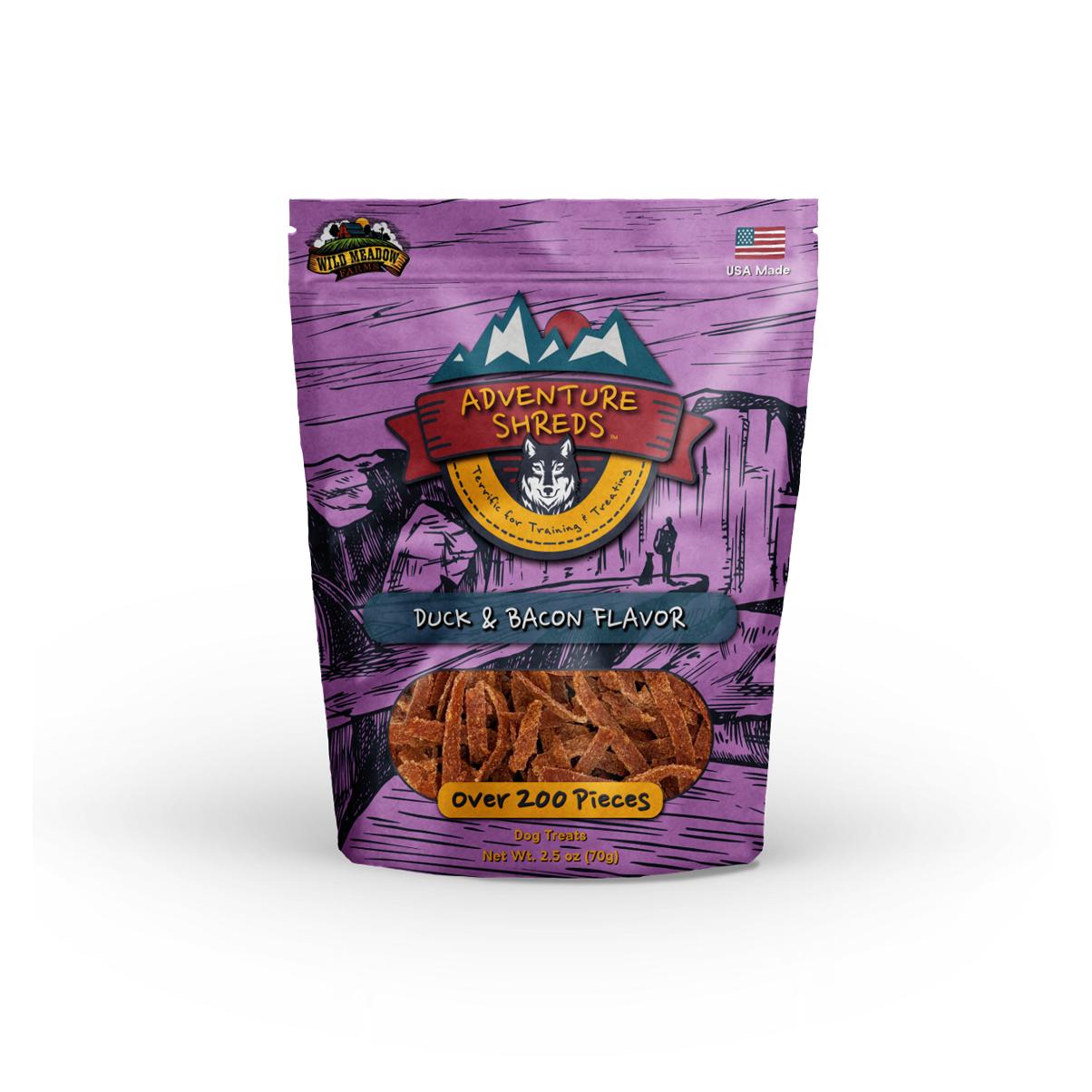 Give them something to quack-about! The Adventure Shreds Duck & Bacon Dog Treats from Wild Meadow Farms combines duck and real bacon to give your fur-pal an enticing flavor without any added sugar, corn, wheat, soy, or grains. Plus, with it's convenient pull-and-tear design, you're able to give them a snack on the go (and save a few for later)!