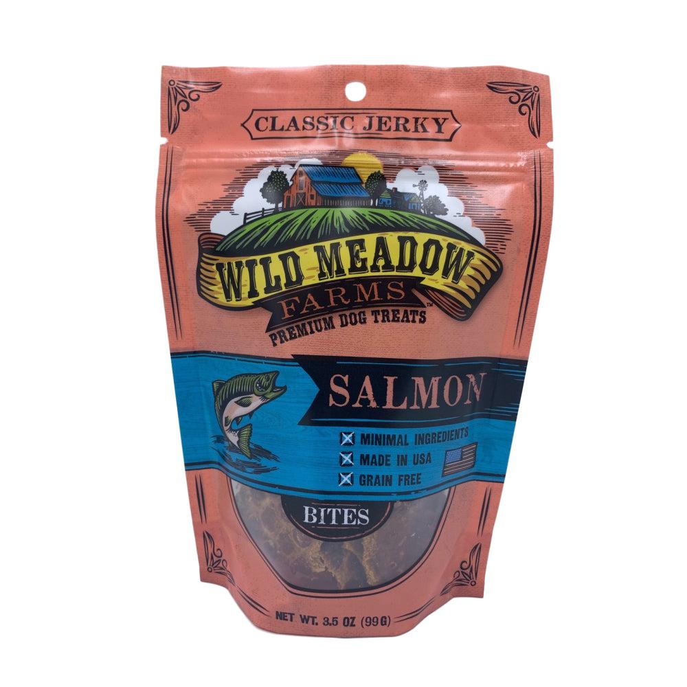 New from Wild Meadow these Classic Salmon Bites are perfect as a high reward treat! Savory, aromatic and chewy jerky is a delicious everyday treat, or break into smaller pieces for training or for use in treat dispensing toys. Grain free, limited ingredients, and made in the U.S.A. Your dog is going to love these!