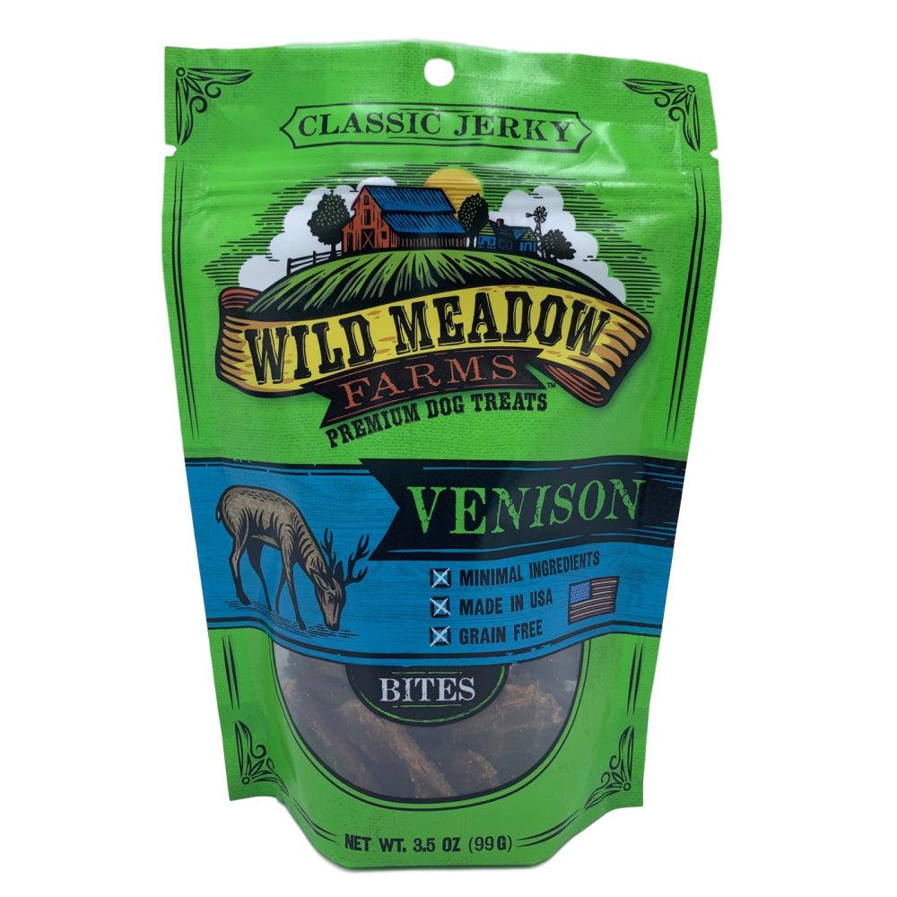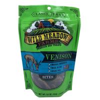 New from Wild Meadow these Classic Venison Bites are perfect as a high reward treat! Savory, aromatic and chewy jerky is a delicious everyday treat, or break into smaller pieces for training or for use in treat dispensing toys. Grain free, limited ingredients, and made in the U.S.A. Your dog is going to love these! 3.5 oz bag.