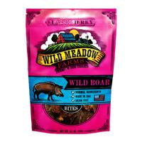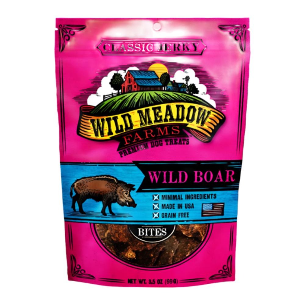 Classic Wild Boar Bites from Wild Meadow are perfect as a high reward treat! Savory, aromatic and chewy jerky is a delicious everyday treat, or break into smaller pieces for training or for use in treat dispensing toys. Grain free, limited ingredients, and made in the U.S.A. Your dog is going to love these! Net wt. 3.5 oz.