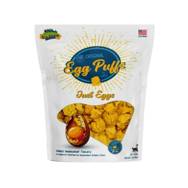 Wild Meadow Farms Egg Puffs for Cats Just Eggs are an airy textured treat that help support a healthy diet. Net wt. 1 oz. Made in the USA.