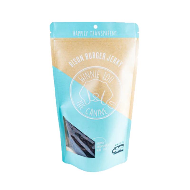 The Bison Burger Jerky Treats from Winnie Lou The Canine Co. are packed with tons of paw-lickin' protein! Made in Colorado with just three ingredients, these wholesome dog treats feature meaty bison, fruity cranberries, and nutritious flax seeds for a flavor combination that will leave your pooch begging for more. A delicious snack for hungry pups, these burgers are easy to break into smaller pieces for training, too! They're the perfect addition to any discerning doggie's treat jar!