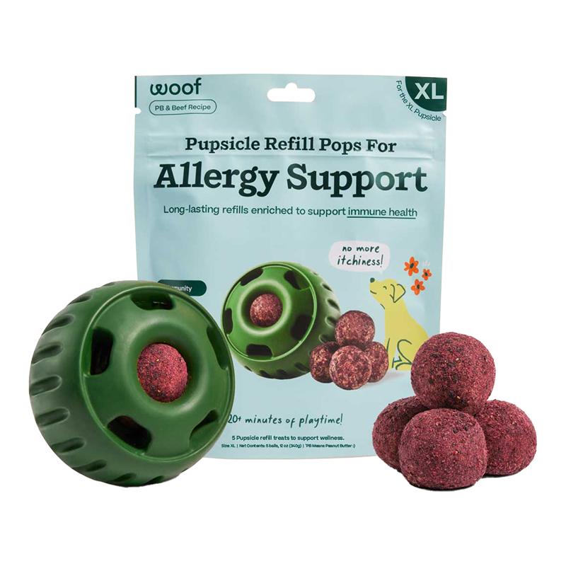 The Allergy & Immunity Wellness Pops are designed to provide your dog with 20 to 40 minutes of engaging playtime while delivering powerhouse ingredients that ease the discomfort and itchiness of seasonal allergies and support your dog's natural immune defenses. These long-lasting, mess-free treats are made with high-quality ingredients in the USA.