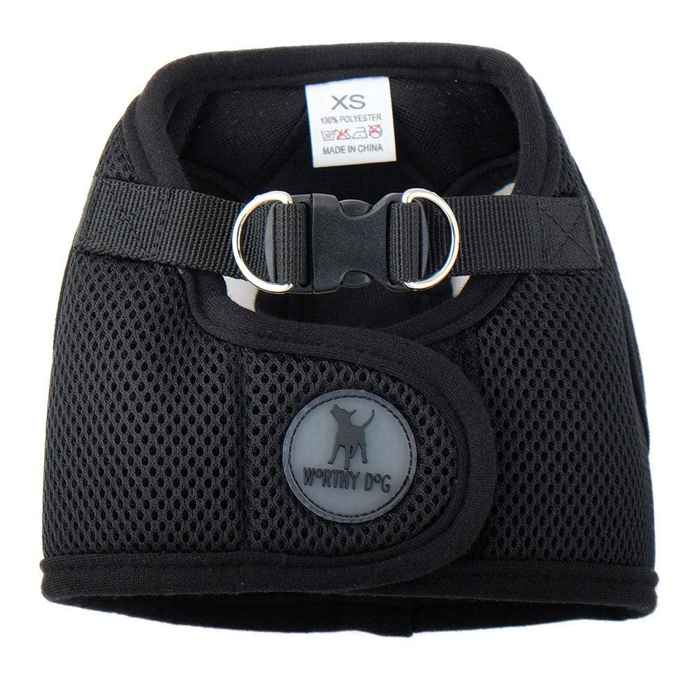 Classic, sleek, and bold, your dog will be the talk of the town wearing Worthy Dog's Sidekick Harness in black! Stylish and durable, Worthy Dog's Sidekick Harness combines fashion and function! For daytime walks, it features bold colors, and for nighttime strolls, there are reflective strips to help keep your dog safe! The harness is made of flexible padded mesh that's soft, strong, and breathable. The powerful Velcro and front snap keeps everything secure while being easy to put on and take off! Comes in sizes Tiny - XX-Large.