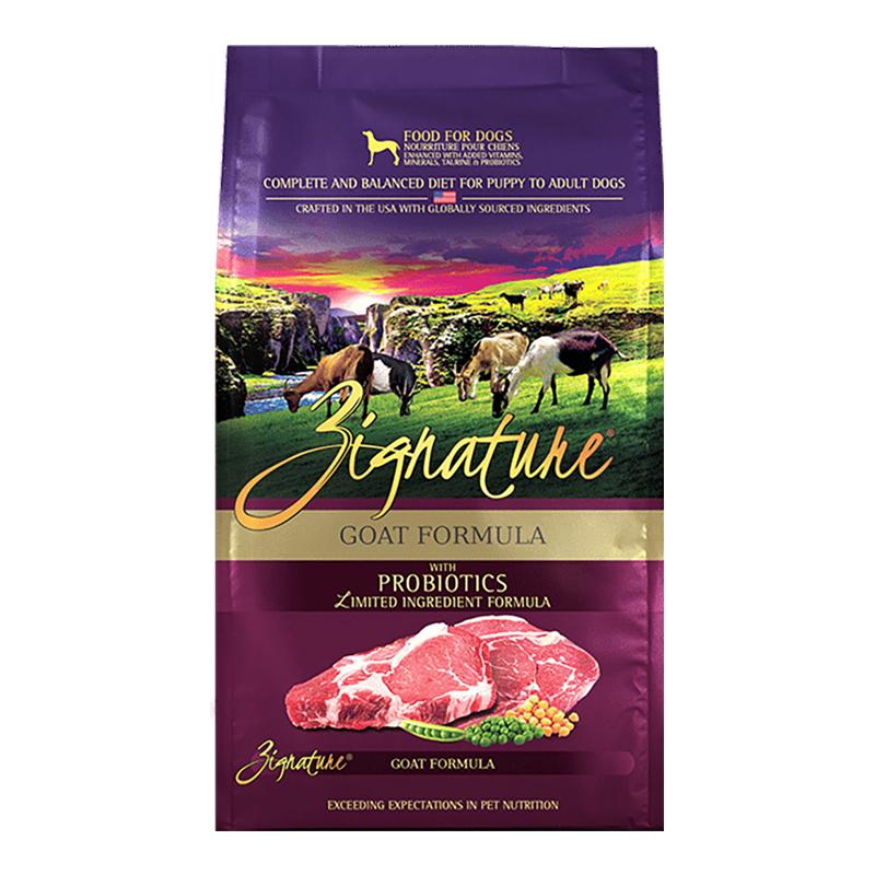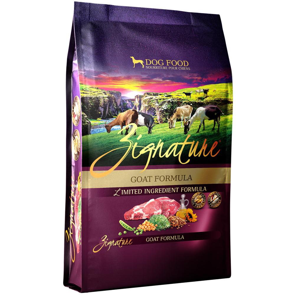 Your dog will love the delectable taste of Zignature Goat Dry Dog Food! This great dry dog food uses one protein: goat from Australia. The Zignature Goat Dry Dog Food then combines this protein with legumes and vegetables along with flaxseed and dehydrated alfalfa meal to supply complex carbohydrates. This dry dog food contains no chicken, corn, eggs, gluten, grain, potatoes, soy, or tapioca. Plus, Zignature uses no artificial flavors, colors, or preservatives! Talk about a healthy meal! So, add some lean high quality novel protein to your dog's diet with the Zignature Goat Dry Dog Food!