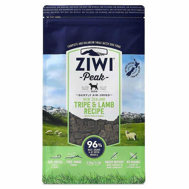 Formulated for optimal nutrition, ZIWI Peak Tripe & Lamb is an excellent food choice for all dogs. This recipe contains 96% meat, seafood, organs and bone in whole-prey ratios just like your pet would seek out in nature, including over 35% green tripe, a natural source of vitamins, minerals and probiotics. Featuring savory grass-fed lamb ethically raised in New Zealand, with no antibiotics or growth permutants, this recipe contains no grains, sugars or glycerin and is gently air-dried to lock in nutrition and provide a natural source of glucosamine and chondroitin to support joint health and mobility. Excellent as a complete meal, or use as a topper to provide a nutrition boost to your dog's diet. Easy to feed, just scoop and serve. A savory, highly nutritious and delicious food your dog will love. Made in New Zealand.