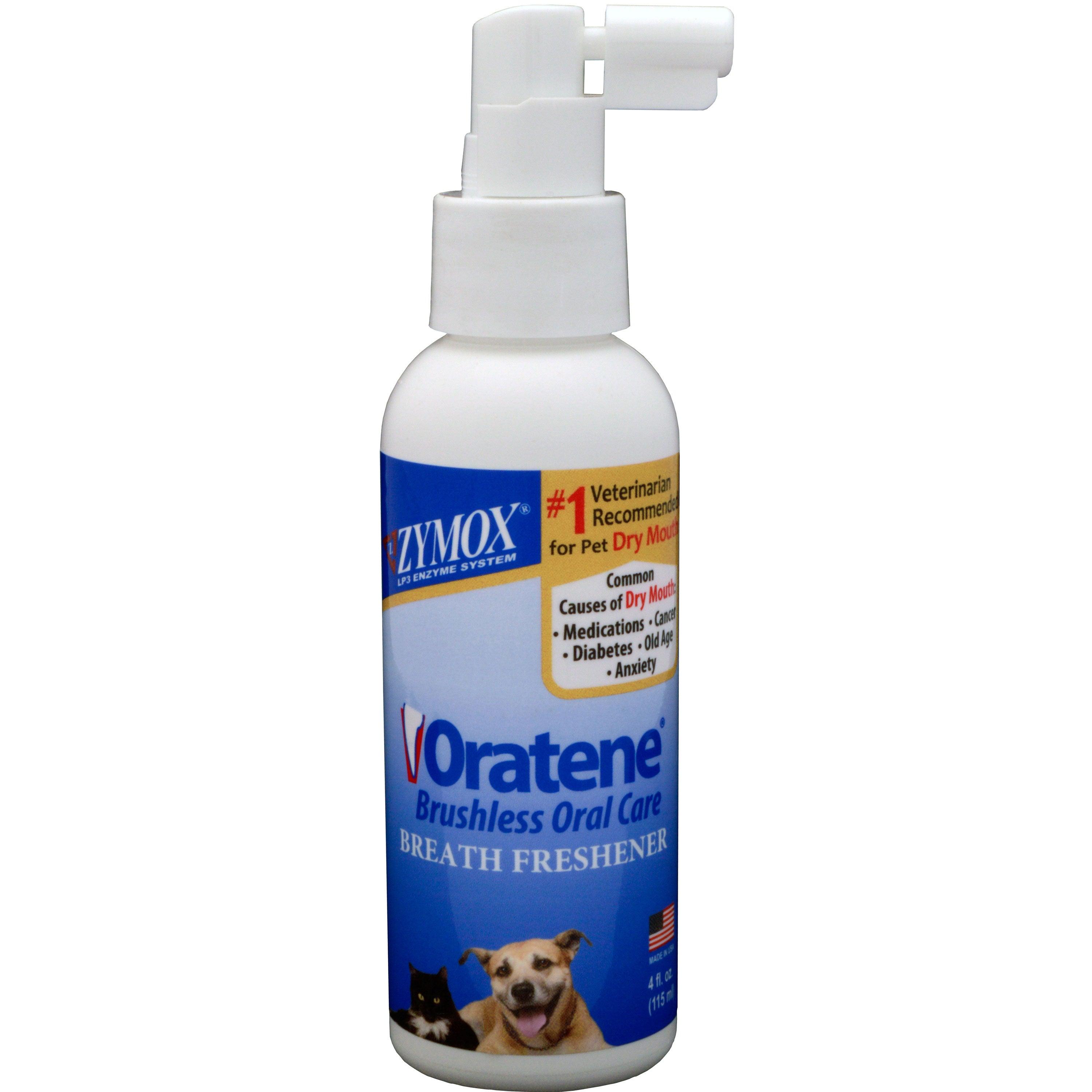 You cover your nose, you hold your breath, you wave frantically at the air in front of you to dispel the powerful odor. And all because your pet looked at you and yawned! Today's the day to change all that; today is the day to try Zymox Breath Freshener by Pet King! This fine focused spray contains enzymes that inhibit harmful odor-causing bacteria and remove plaque biofilm. Maintain your dog or cat's oral health and freshen their breath with this gentle, soothing formula. Works great to help eliminate dryness, irritation, inflammation and redness. Relieves and protects your pet's mouth tissues. It's safe to use everyday, and contains no alcohol, xylitol or chlorhexidine. Comes in a 4 oz. bottle with mister.